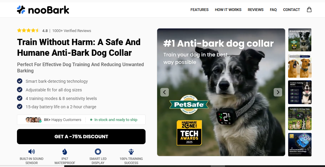 The NooBark Anti-Bark Collar is available exclusively through the official website, ensuring you get an authentic product backed by warranty and customer support.